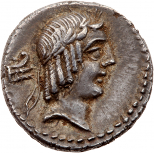 Vorderseite: Kopf des Apollo nach r., dahinter Kontrollzeichen Bug (prora); Perlkreis.
